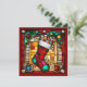 Cartão de Natal Personalizável de Vidro Estampável Vermelho Enviar cartões de natal festivos com este cartão de Natal personalizável de vidro vermelho estampado. Este design IA digitalmente editado apresenta uma vibrante meia-natal vermelha rodeada de tons de joias ricos, capturando o aspecto clássico da arte de vidro manchado. Personalize seu cartão com nomes, datas ou uma mensagem sincera para tornar seus desejos de feriado realmente especiais. Perfeito por compartilhar alegria de Natal com amigos, familiares ou clientes nesta temporada.