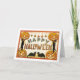 Esta placa apresenta uma imagem vintage do Dia das Bruxas. O texto dentro pode ser personalizado para a saudação preferida ou excluído para uma placa de vazio.