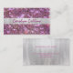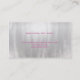 Cartão de visita de senhoras brilhantes, com gráficos de um olhar brilhante enrugado, enrugado, na frente, com uma banda prateada, correndo pelo meio. A parte de trás da cartão de visita é feita com um tom de prata sólido. Personalize o texto cor-de-rosa para atender às necessidades de sua empresa. Um excelente de cartão de destaque encantador para qualquer tipo de ocupação ou negócio.