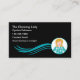 Cartões de visitas bonitas para um serviço de limpeza de casas para pequenas empresas, desenhadas com um gráfico de personagem e estilo simples de uma senhora de limpeza fofo.