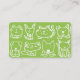 Um cartão de visita para os petsitters felizes lá fora. Este cartão oferece pequenos desenhos de gatos e cães em verde, permitindo que seus detalhes fiquem acima e abaixo dos animais de estimação. As costas também são decoradas em verde com gatos e cães bonitos. Todo o texto é editável