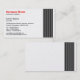 Um Modelo de cartão de negócios com um esquema simples e claro da dern, decorado no bordo direito com uma tif composta por dezessete linhas de reta verticais que equilibram o texto. O reverso da placa tem a mesma tif decorativa, mas a área de texto foi deixada em vazio. Isso pode ser deixado como uma área útil para anotações etc ou personalizada com texto adicional. As decorações também podem ser limpas ou substituídas. Você também pode adicionar gráficos adicionais, por exemplo, um logotipo. As cores de texto e de fundo também podem ser personalizadas. Este modelo também está disponível em diversas combinações de cores. Adequado e adaptado às empresas ruas.