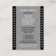 Um modelo comercial/cartão de visita com um solteiro de 35 mm na frente, no qual você também pode adicionar sua própria foto. O quadro do filme está numerado 32, 32A e apenas tem a palavra genérica "FILM" na borda para dar um visual autêntico sem infringir marcas comerciais ou marcas. O filme tem bonito tamanho de vida, pelo que deve parecer muito autêntico no produto final. Nome da empresa junto com o tipo de negócio na frente, próximo à parte inferior, posicionado para equilibrar espacialmente o quadro do filme. Endereço do nome e outros detalhes no verso que são indicados à esquerda e à direita com foguetes de filme de 35 mm. Personalize com seus detalhes, etc., ideal para um estúdio fotográfico, mas pode ser adaptado a outros tipos de negócios, pressione personalizar para alterar o design às suas necessidades.