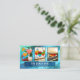 Cartão de visita com 4 das suas próprias fotos personalizadas (opcional), enquadradas por um design de turquesa abstrato artístico colorido. Bonita para apresentar um portfólio, por exemplo, para um bar de praia.
