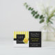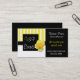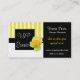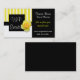 Cartão de visita à moda, com um design listrado amarelo e branco lunático na esquerda, com com uma área quadro para o nome da empresa que tem uma flor cor-de-rosa bonito nela. A área de texto no lado direito do cartão é preto contínuo. Personalize este grande cartão de vista para o senhor mesmo, mudando o estilo de pia batismal, cores, e os tamanhos para serir seus gostos, adicionam mais campos do texto na parte traseira se você quer.