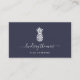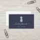 A design moderna Chic apresenta uma ilustração de abacaxi branco, o símbolo tradicional da hospitalidade, num rico fundo azul-da-meia-noite. Adicione duas linhas de texto personalizado à frente, com seu nome ou nome comercial em script manuscrito chic, e personalize a parte de trás com seus detalhes de contato de cheio sob uma ilustração menor do abacaxi. Perfeito para profissionais do setor da hotelaria, cozinheiros, prestadores de cuidados de saúde ou qualquer atividade profissional.