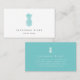 O design moderno chic apresenta uma ilustração do abacaxi da turquesa tropical sobre um fundo branco nítido. Adicione duas linhas de texto personalizado à frente e personalize a parte traseira com os detalhes de contato do seu cheio em branco sobre o fundo azul de ovo de um robin correspondente, com uma ilustração menor do abacaxi branco. Perfeito para profissionais do setor de design de interiores ou de hotelaria.