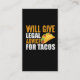 Esse Engraçado Will Dá Conselhos Legais Para Tacos Shirt é perfeito para todos os advogados. Vista na terça-feira do Taco! Excelente presente para seus amigos do advogado!