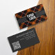 Personalize este cartão de visita elegante e ousado com seu logotipo e seu código QR. Cores: carvão, laranja e preto.