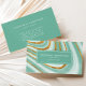 Tendência, cartão de visita moderno com design de geode abstrato-agate em tons de verde-menta, com realces falsos de brilho dourado. Personalize-o com o seu nome na letra branca da placa de impressão e o seu título em letra branca, serif itálico, num retângulo verde da casa da moeda com duas bordas. Adicione seu nome, título e detalhes de contato em branco no lado verde da casa da moeda sólida ao reverso.