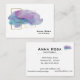 Feminino contudo forte e cativar este cartão de visita moderno artístico e abstrato original bonito é para alguém que está procurando um design artística chique bonito para sua marcagem com ferro quente do negócio. Há umas formas geométricas do ouro fino combinadas com uma forma cor-de-rosa e azul roxa abstrata feminino macia da aguarela. A cor da pia batismal é preto e o tipo da pia batismal é forte e obterá observado.