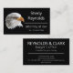 Chefe de uma águia careca. Um cartão de visita de cor preta de tamanho padrão encantador para qualquer um. Design personalizável. Você pode mudar os textos de modelo na frente e atrás. Divirta-se e seja criativo!