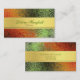 Cartão de visita elegante, com uma folha alaranjada, verde, e de ouro que olha o fundo. Gráficos de um ouro chanfrado olhando a área de texto da listra, estiramentos através do meio. O texto verde e preto está pronto para personalizar, com sua informação.