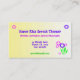 Facilmente personalize ou remova todo o texto neste cartão de visita alegre, lunático para serir sua prática. Anuncia os serviços de um patologista de discurso e caracteriza um design fantástico de flores cor-de-rosa e roxas com folhas verdes e de hastes em um fundo do amarelo de manteiga na parte dianteira e na parte traseira.