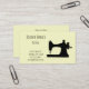 Um grande cartão de visita para um alfaiate ou um especialista sewing. Tem uma silhueta de uma máquina de costura no lado esquerdo em um fundo amarelo. Você personaliza o texto na parte dianteira e na parte traseira.