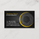 design 2012 da socialite do ©. Cartão de visita moderno do fotógrafo com design do obturador e texto amarelos do ouro. O elemento do design do obturador pode ser movido e resized no cartão de visita. Escolha um estilo diferente da cor e de pia batismal do fundo serir seu negócio.