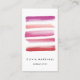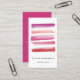 Cartões de visitas de aquarela em um formato vertical exclusivo apresentam seu nome ou nome de empresa abaixo de amostras coloridas de batom em cores puras de água. Adicione as informações de contato do cheio ao fundo em branco em magenta. Inclui três ícones de mídia social e um campo modelo para seu nome de usuário ou identificador.