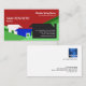 O cartão de visita caracteriza a silhueta animado das construções nas hortaliças luxúrias. Há três construções do vários tamanho e cor. A construção preta principal abriga seus detalhes do contato que é feita nos alfabetos brancos. O contraste entre preto e branco acentua seus detalhes. Para trazer o equilíbrio às cores, as construções azuis e brancas são adicionadas. Seus nome e posição acabam-se na parede esquerda enquanto o nome da empresa e o tagline estão no canto direito superior. Os fraseios são feitos no branco contra um fundo vermelho da noite.