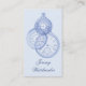 Um modelo de cartão de negócios para reparadores ou negociantes do relógio da antiguidade ou de bolso, com um design feito de três gravuras do vintage de relógios decorativos em um fundo azul pálido.