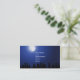 Uma lua brilhante brilha no céu nocturno azul escuro com a sombra de uma cidade abaixo dela.