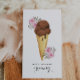 A cartão de visita de sorvete moderna e branca compra com uma ilustração aquosa de um sorvete de chocolate num cone de waffle com flores rosa-rosa cor rosa.