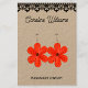 Um cartão de exibição de 2,5 pol por 3,5 pol em papel Kraft para venda de brincos. A parte superior é decorada com rendas pretas. A fonte é moderna e simples e o texto é totalmente editável. Os orifícios perfurados podem ser editados ou removidos.