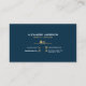 A dark blue business card with a simple illustration of a tree and a house and texts in white and gold colors. It could be used for arborist or landscaper, but also garden designers, landscape architects, professional gardeners, horticulturist, mowing and lawn care, tree pruning, and maintaining green spaces. On the back you can find full information decorated with icons.