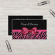 Cartões de visitas de butique brilhantes com uma impressão zebra rosa-chic e preta, tipo brilho, e uma fita cintilante de sequência luxuosa atada a um arco brilhante. Personalize adicionando o nome do consultor profissional ou do estilista e do horário comercial. Essas cartões de visitas de glitz e glam Beauty ou salon são perfeitas para atrair novos clientes e clientes. Imagem impressa plana, NÃO com brilho ou fita real.