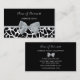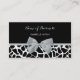 Cartões de visitas de impressão de girafa branca e preta com uma fita de cinza prateada elegante atada a um arco na moda. Personalize esta moda design de impressão de animais acrescentando o nome da mulher profissional e da profissão escolhida. Imagem impressa plana, não arco real.