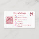 O Arco Minimalista do Cartão de visita Rosa mescla elegância e funcionalidade moderna para criar um design que se destaca. Apresentando um sotaque de arco rosa suave e um layout limpo e sem organização, esta placa é perfeita para profissionais que valorizam a sofisticação e a simplicidade. A inclusão de um código QR adiciona uma vantagem técnica, permitindo que os clientes acessem instantaneamente seu site, portfólio ou mídia social com uma varredura simples. Esta fusão da elegância tradicional e da conveniência digital torna-a uma ferramenta versátil para a construção de ligações significativas. Perfeito para indústrias centradas em clientes e criativas Este cartão de visita é uma excelente escolha para profissionais em indústrias como beleza, moda, bem-estar e planejamento de eventos. Quer você seja um artista maquiador, dono de butique, planejador de casamento, ou instrutor de ioga, o arco rosa expele charme e profissionalismo adaptado ao seu campo. O código QR oferece uma maneira perfeita de mostrar seu trabalho ou agendamento de compromissos, fazer-o especialmente valioso para freelancers e empresários que buscam dinamizar as interações com clientes e, ao mesmo tempo, deixar uma impressão duradoura. O arco é gerado pelo hotpot.ai. Clique em "Personalizar" e adicione seus detalhes, inclusive o código qr, e obtenha este cartão de visita profissional.