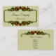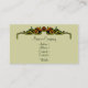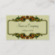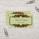 Cartão de visita elegante com uma estrutura de estilo de deco artístico definida em um fundo amarelo pálido. Texto é um script formal feito em verde muito escuro para corresponder ao fundo do cartão.