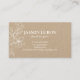 Estes cartões de visitas chicos e elegantes e minimalistas exaltam uma sensação de estilo e frescura sem complicações. Bonita em sua simplicidade, esse design apresenta um conjunto contemporâneo de fontes e elementos florais em branco nítido contra um fundo natural de artesanato. Com o texto opcional no verso, você pode personalizar com o slogan ou mais informações.