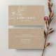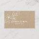 Estes cartões de visitas chicos e elegantes e minimalistas exaltam uma sensação de estilo e frescura sem complicações. Bonita em sua simplicidade, esse design apresenta um conjunto contemporâneo de fontes e elementos florais em branco nítido contra um fundo natural de artesanato. Com o texto opcional no verso, você pode personalizar com o slogan ou mais informações.