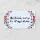 Design de negócios personalizável feito à mão com a disposição de arte folclórica botânica eslava em azul claro e escuro, e cores vermelhas, com caligrafia e fontes modernas para um toque profissional, mas autêntico feito à mão.