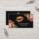 Cartão De Visita Artista de Makeup de Lábios Dourados Floral