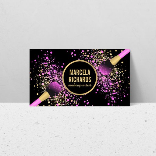 Uma "poeira" multi-dimensional de feitiços maquiados confetti enfeitam este modelo de cartão de negócios criativo do artista. Seu nome ou nome comercial está no centro para uma estética profissional. Este design de dois lados permite uma ampla margem para as suas informações de contato no verso. Arte e design © 1201AM CREATIVE