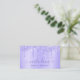 Purple Drips Sparkle Lash Salon Makeup Artist Cartão de visita. Este lindo design de vidro apresenta pingos brilhantes de tendências. Perfeito para uma maquiadora, cabeleireiro, salão, extensões de lash ou negócios de beleza microblading.