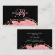 Um cartão de visita único monograma com mármore cor-de-rosa e folha de ouro agata o design de geode a preto, para um artista de maquilhagem, com um primeiro guião elegante e um nome e título da tipografia sans serif.