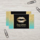 Makeup Artist Chic Lábios Turquoise Moderna e Cartões de visitas Dourados Glitter Social Media.