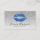 Makeup Artist Chic Blue Lábios modernas Cartões de visitas de brilho prateado.