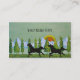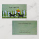 Personalize este cartão de visita! Duas silhuetas dos cavalos selvagens que galopam através de um prado da grama. Fundo Texturized em verdes de refrescamento. Os pinheiros, neve tamparam montanhas e um por do sol no fundo. Dos meios mistos originais que pintam pela flor de Minerva para Angela Piraino.