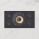 Auto-falantes da imagem principal neste Cartão de visita de áudio de produção posta engenheiro de áudio. Perfeito para entretenimento, show business, gerenciamento de talentos, habilidades de talentos, artes performativas, engenharia técnica, temas de tecnologia. Personalize-o com seu nome e detalhes na parte traseira do cartão.