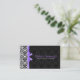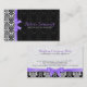 Fita púrpura elegante com balas florais pretas e brancas, modelo de cartão de negócios.