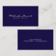 Cartão de visita moderno simples profissional dos azuis marinhos e do branco que caracteriza seu nome no estilo de pia batismal moderno da caligrafia e informação no estilo de pia batismal moderno de Sans Serif.