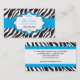 O impressão da zebra faz um fundo impressionante para um quadro ornamentado em uma fita azul brilhante das bolinhas neste cartão de visita deobtenção. Um nome da empresa e um contato principal são apresentados no quadro cercado por ornamento encaracolado. O reverso revela toda a informações de contacto entre dois painéis do impressão da zebra acentuados com as fitas polca-pontilhadas azul. Disponível em cores alternativas com produtos de harmonização.