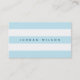 Cartão de visita apresenta fundo azul pastel e listras brancas na frente e um lado azul na parte traseira. Este pré-disquete é ideal para profissões como designer de interiores, escritor, editor, estilista, consultor, etc. Personalize-o substituindo o texto do marcador de posição. Para obter mais opções, como alterar a fonte e seu tamanho/cor ou o espaçamento entre letras, clique no botão "Personalizar". *Observe que a Marca d'água do Zazzle que aparece na visualização de zoom NÃO aparecerá no produto impresso final. © Rosewood e Citrus