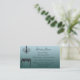 Este cartão elegante é feito em um fundo azul do inclinação que vai da luz na parte superior a mais escuro na parte inferior. Uma mesa ornamentado elegante senta-se no inferior esquerdo coberto por um candelabro de cristal elegante. Personalize com seus nome e informação do design de interiores em sua escolha das pias batismais.