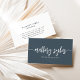 Design de cartão de visita simples e elegante apresenta seu nome ou nome comercial na tipografia moderna, escrita à mão. Adicione uma linha adicional de texto abaixo em caracteres limpos e modernos de bloqueio para sua ocupação ou título. Personalize o lado inverso com seus detalhes de contato. Uma escolha chic e profissional em azul marinho empoeirado para qualquer ocupação.
