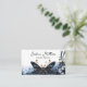 Esses cartões de visitas personalizados apresentam um tema celeste em tons de azul marinho e ouro. Uma mariposa majestosa é fotografada no fundo, acentuada com ouro e flores azuis, com um céu celeste à noite ao fundo. Um nome de exemplo é impresso no topo em uma fonte de script elegante, seguida de um título de mídia psíquica. A parte traseira dos cartões de visitas apresenta informações de contato e serviços de amostra como leitura de tarô, limpeza de aura e cura de cristal.