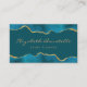 Este elegante cartão de visita moderno apresenta uma coloração azul-lacrimejante agate design, aparada com folha de ouro sobre fundo de metal coordenador. Personalize-o com seu nome em um script de escrita manual de cor dourada e informações comerciais em fontes sans serif. A design de venda é repetida no sentido inverso, com espaço para as suas informações de contato.
